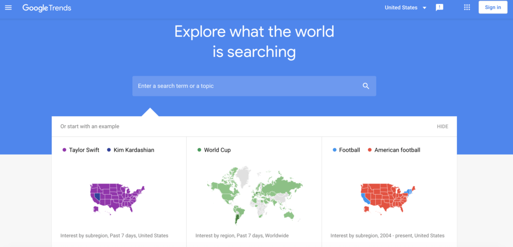 Google Trends is one of Google’s most powerful tools – and it’s free. This tool is indispensable when it comes to keyword research.