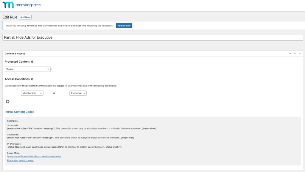Now that you’ve got MemberPress installed and configured, it’s time to set up your ad-free rule.