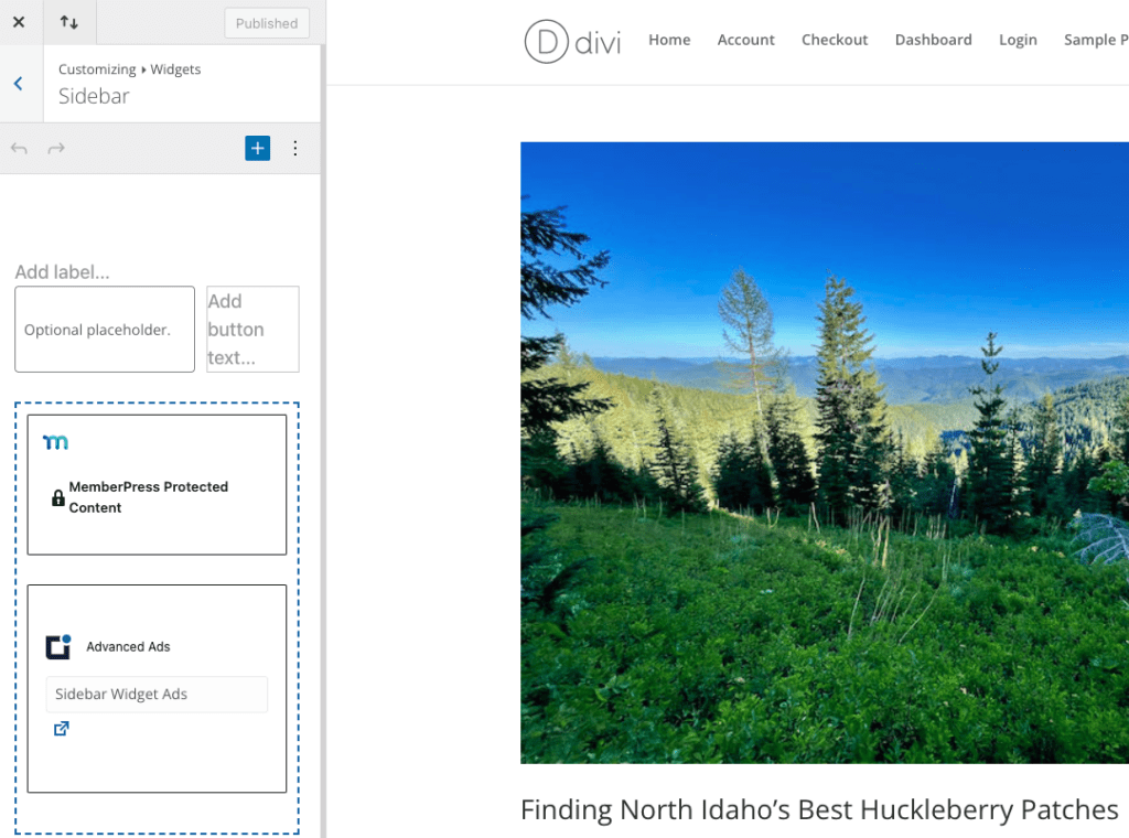 So, to hide ads within a widget, first add a protected block to the widget. This is how you would do it with Divi.