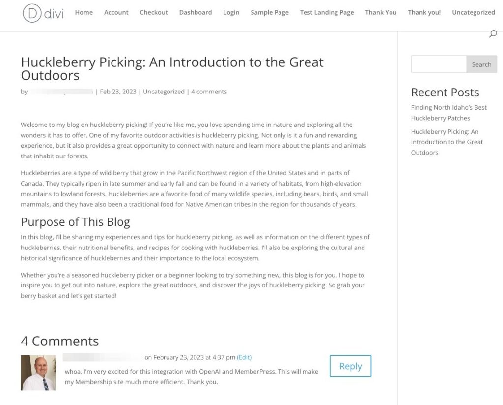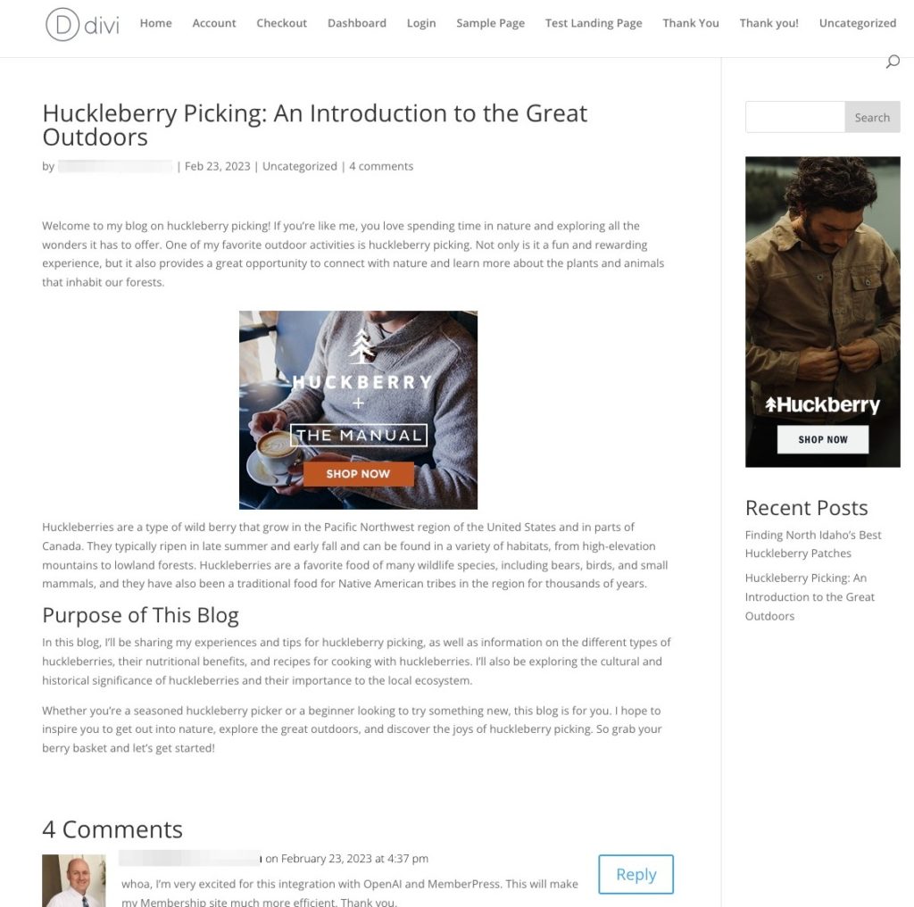 Notice the ad in the sidebar as well? That’s a widget area, I’ll show you how to handle ads in widget areas next. But first, here is what my Executive members experience when they read the same post.