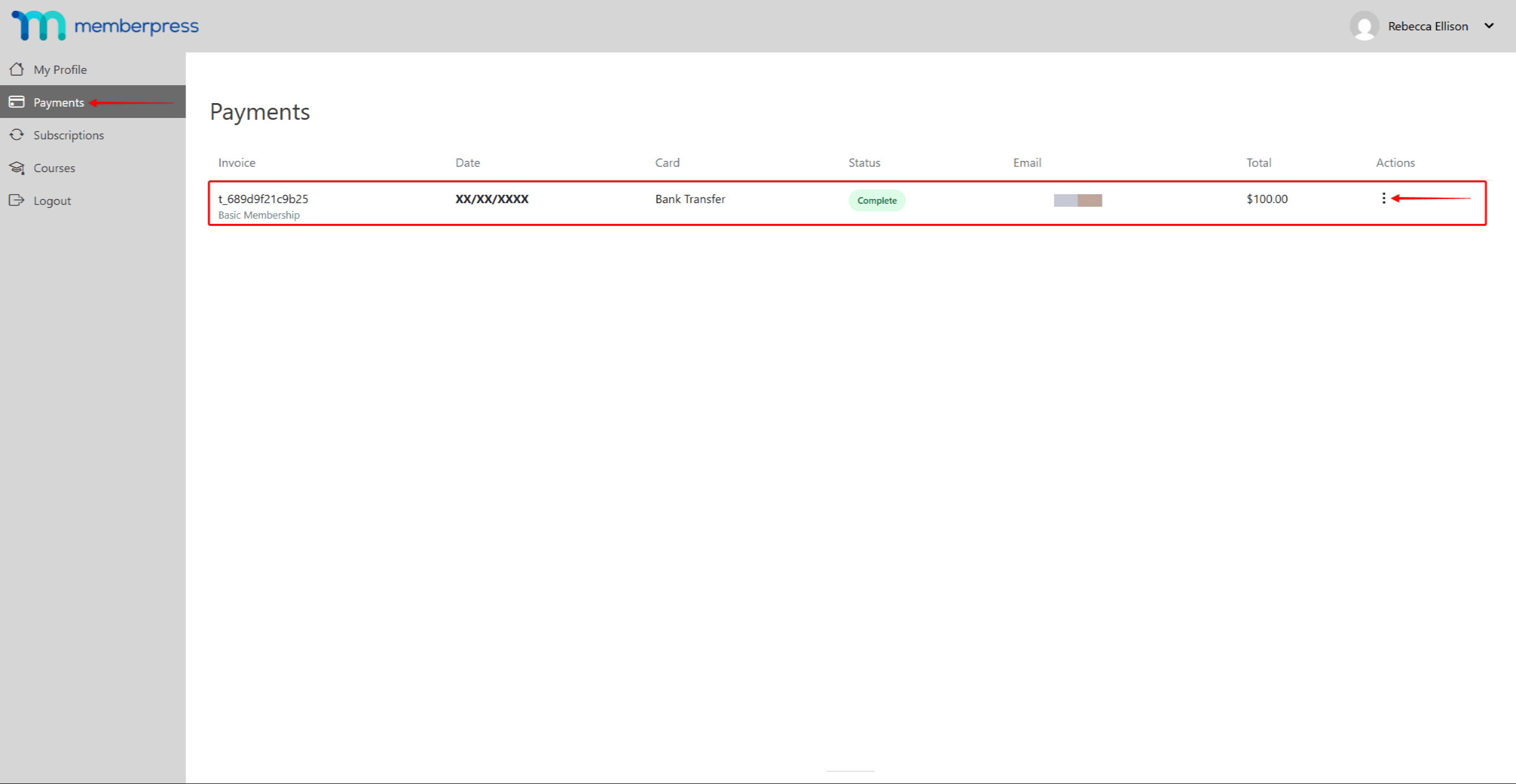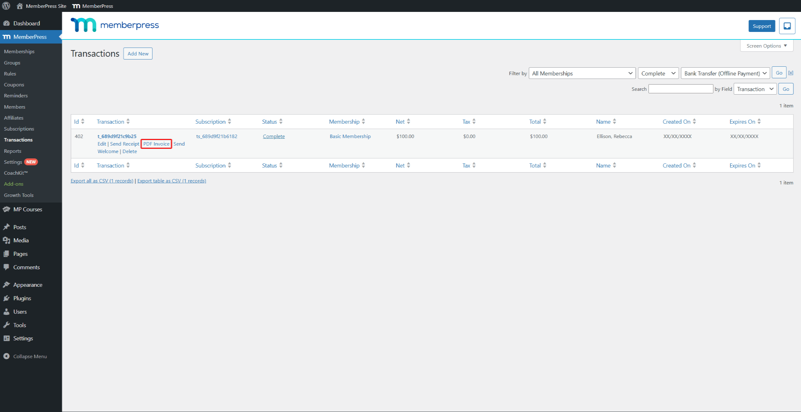 - Navigate to Dashboard > MemberPress > Transactions.