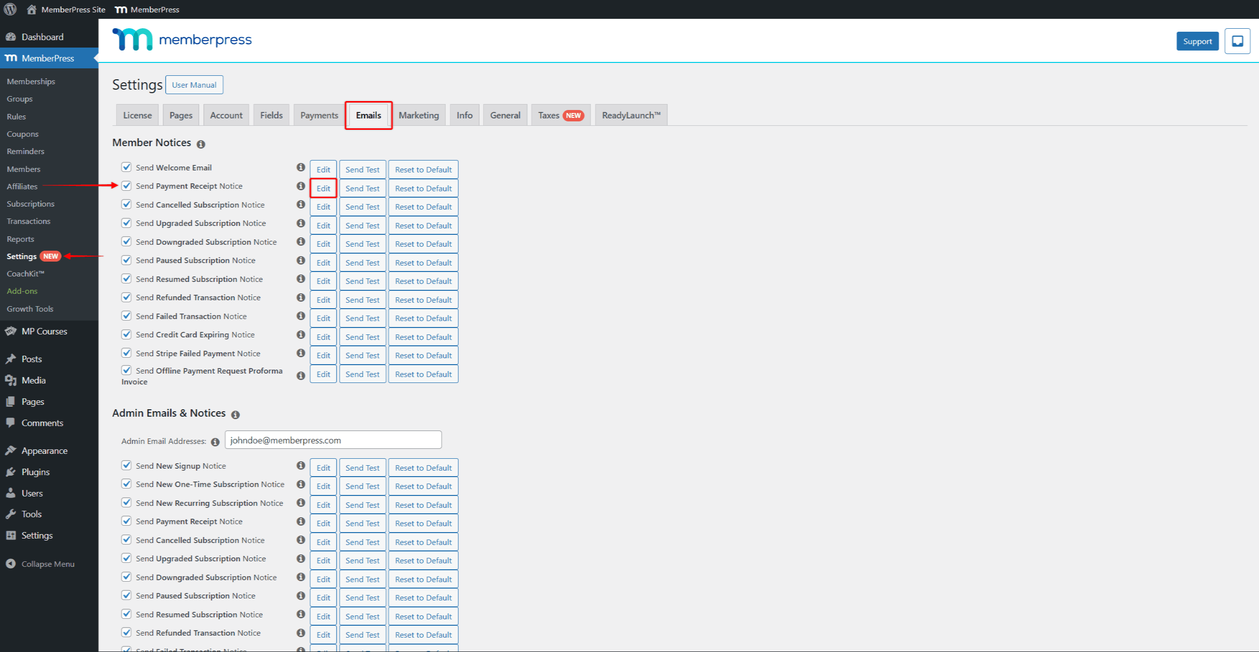 This email will also be enabled by default under the Admin Email & Notices section at Dashboard > MemberPress > Settings > Emails tab.