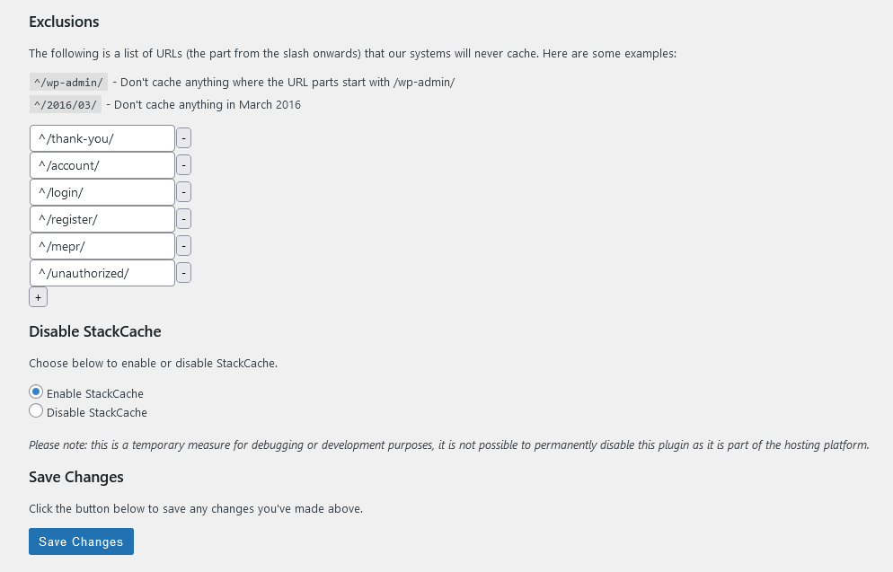 Their managed WordPress hosting comes with the StackCache plugin that you'll have to adjust, as shown in this image, to ensure proper MemberPress functionality: