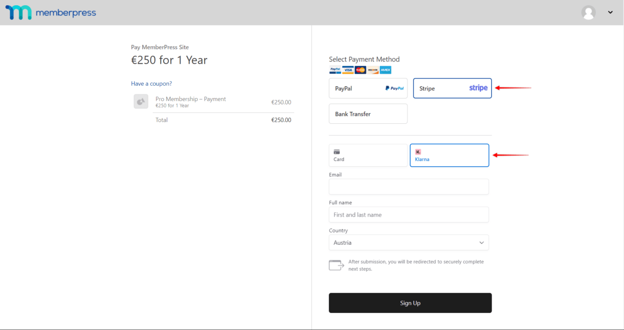 Klarna is a “buy now, pay later” payment method. It allows customers to purchase membership subscriptions on your website and pay in installments. MemberPress integration with Stripe enables you …